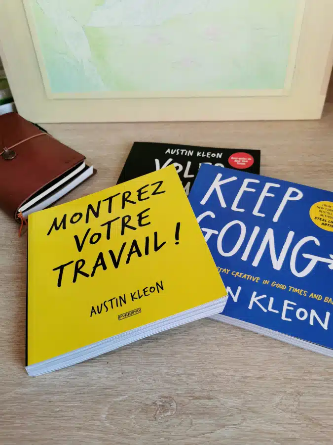 Durant les vacances de décembre, je m’attelle à la relecture de mes livres inspirants favoris, ceux qui m’aident à garder le cap quand le moral flanche, que ma vision se trouble et que je me demande si tout ce que je fais a bel et bien un sens : « Volez comme un artiste », « Montrez votre travail ! », « Keep going (Continuez) », par Austin Kleon*.
